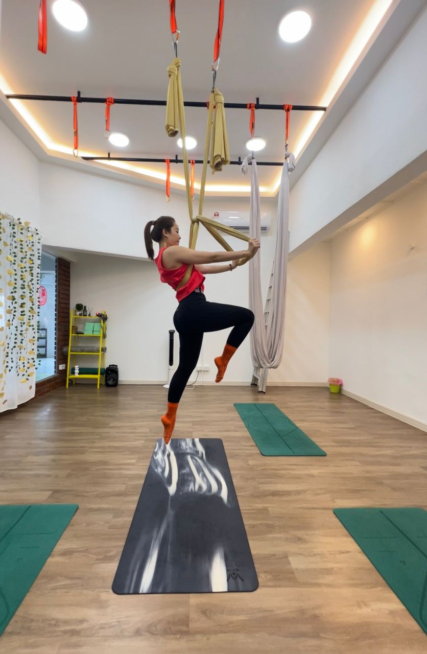 Aerial Mellow is known as low altitude yoga. The height of the hammock is below the knees.